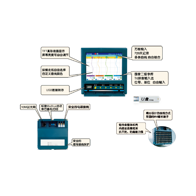 提供曲线显示、棒图显示、数字显示、总览显示等多种中文画面